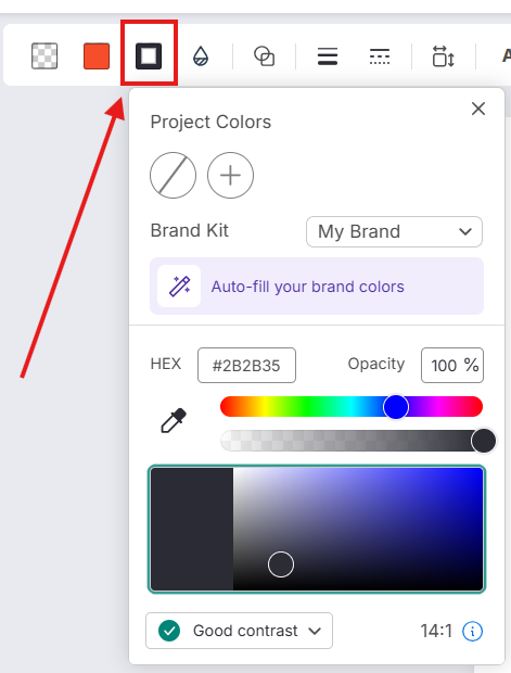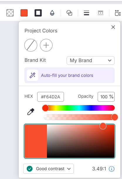 Choisissez une nouvelle couleur à l’aide du sélecteur de couleurs, du Brand Kit ou des couleurs du projet.