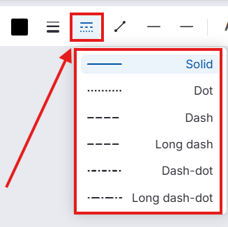 Cliquez sur Style de ligne pour choisir entre Plein, Point, Tiret, Tiret long, Tiret-point ou Tiret long-point.