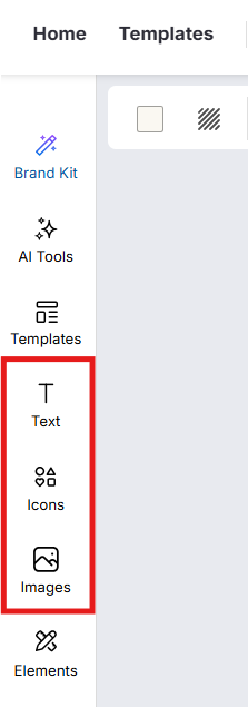 Personnalisez votre design avec du texte, des photos et des icônes ; et modifiez les couleurs et les éléments de conception tels que la largeur et l'alignement des bordures à l'aide de la barre latérale gauche et de la barre d'outils supérieure.