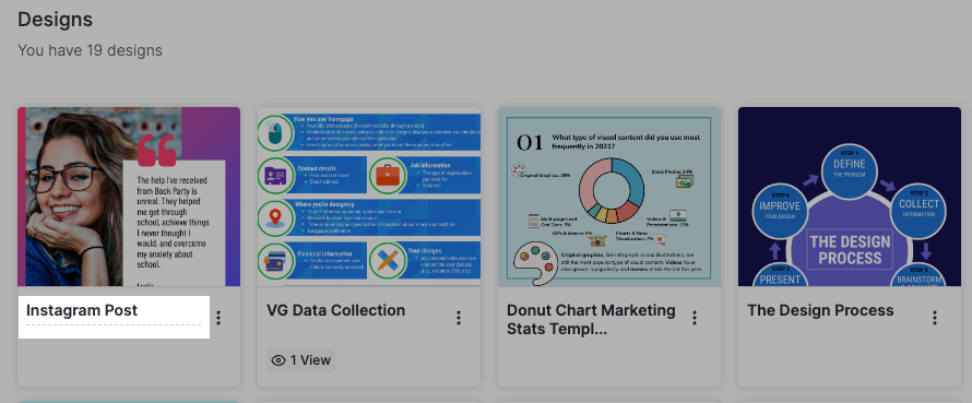 Renommez l'infographie de la page Mes créations en cliquant sur le titre de la vignette d'aperçu :