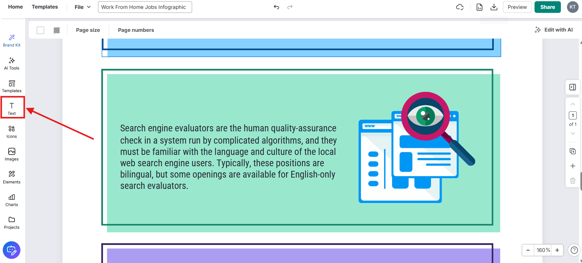 1. Cliquez sur Texte dans la barre latérale gauche pour ouvrir la barre d’outils de texte.