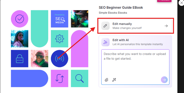 👉 Pour prévisualiser un modèle avant de l’éditer, cliquez simplement dessus. Après l’aperçu, cliquez sur Modifier manuellement pour ouvrir le modèle dans l’Éditeur.