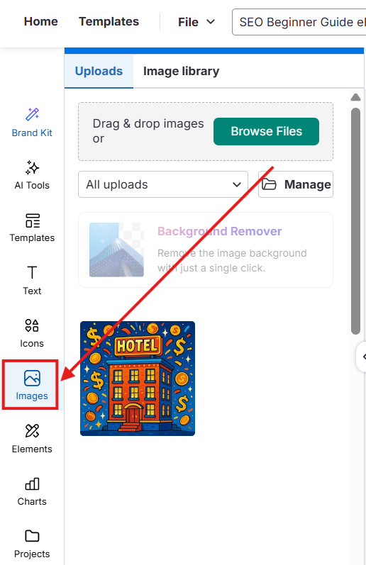 Images : Téléversez vos propres images ou choisissez-en dans la bibliothèque de Venngage.