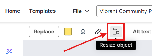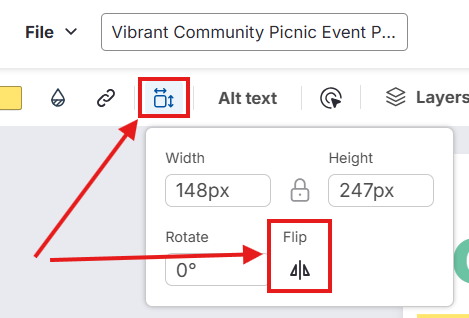 Dans la barre d’outils supérieure, cliquez sur Redimensionner l’objet pour ouvrir les options de rotation et de retournement.