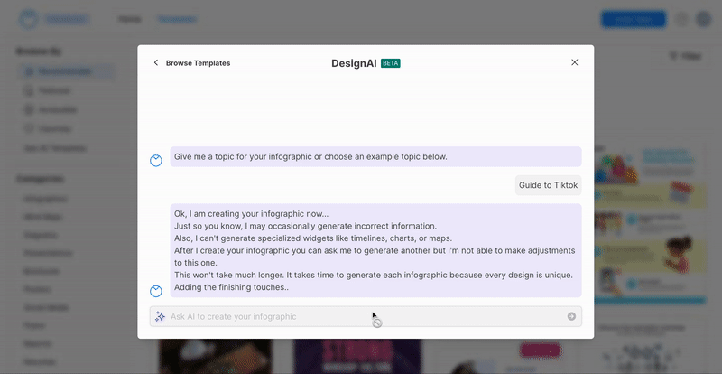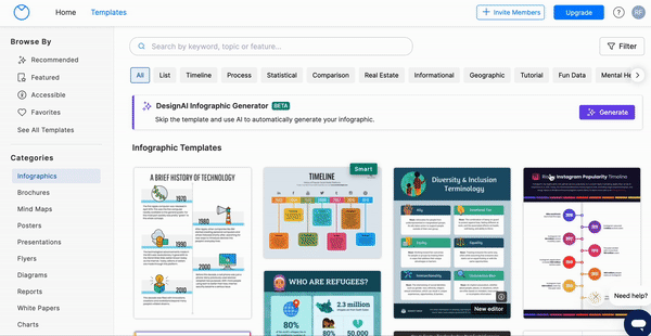 Utilisez DesignAI (bêta) de Venngage pour générer des infographies.