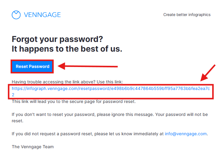 O Venngage enviará um link para redefinição de senha para sua caixa de entrada.