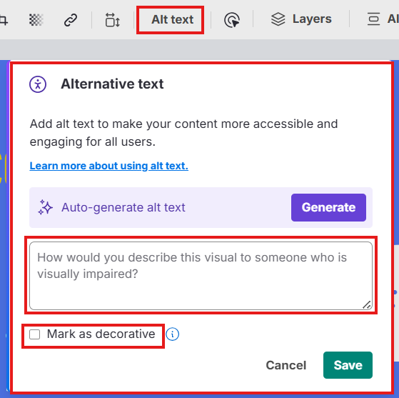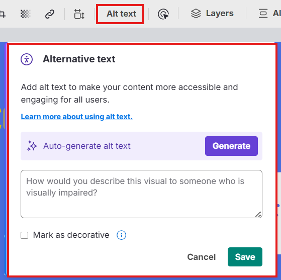 Use a ferramenta de Alt Text no Editor do Venngage