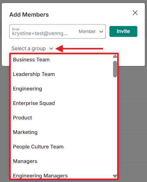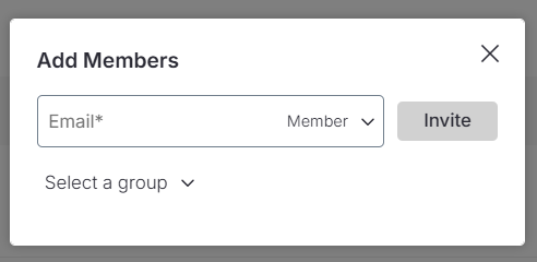 Clique no menu suspenso no campo de e-mail e selecione Membro ou Convidado.
