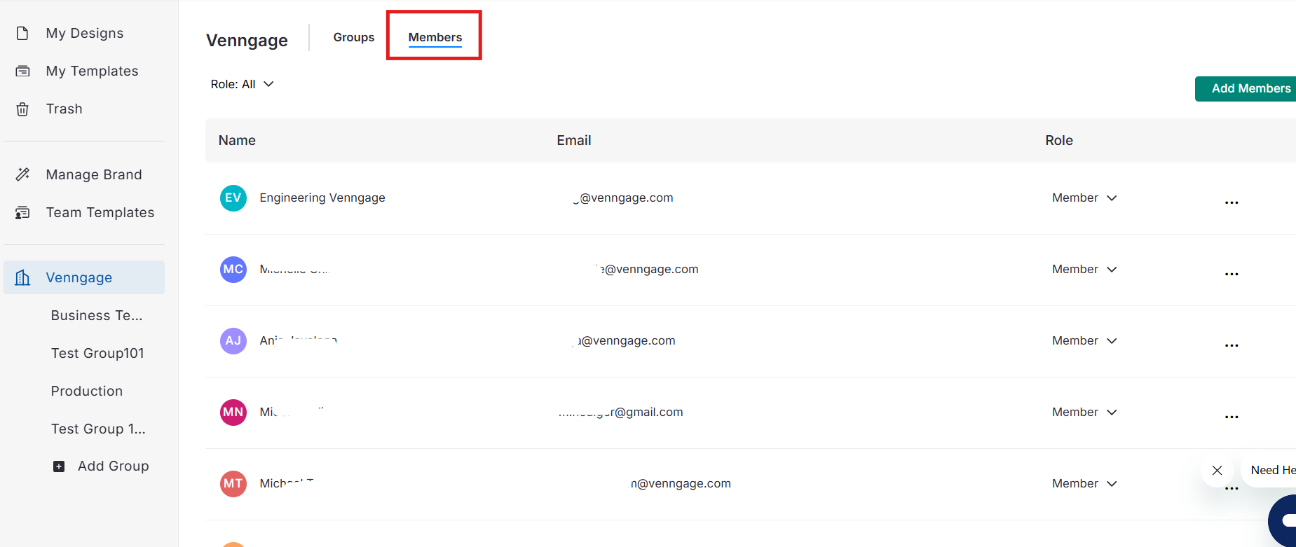 Você pode ver todos os Membros e Grupos diretamente da sua página Início do Venngage.