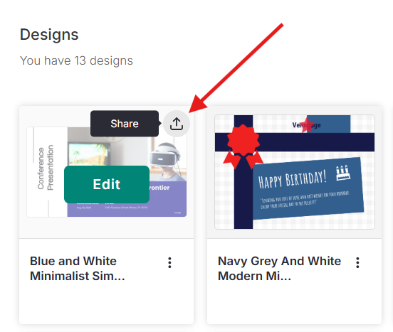Passe o cursor sobre um design e clique em Compartilhar.