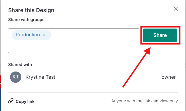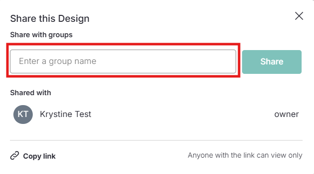 Na janela Compartilhar este Design, digite o nome do Grupo e selecione-o.