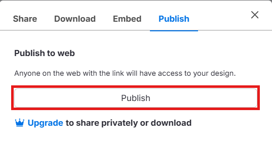 Clique em Publicar para tornar seu design visível para qualquer pessoa com o link.