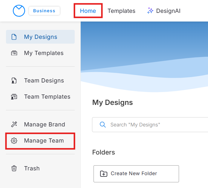 Vá para Manage Team na página inicial.