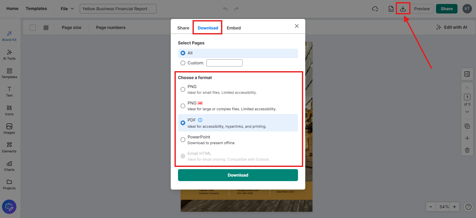 Clique no botão Download e escolha o formato de arquivo desejado.