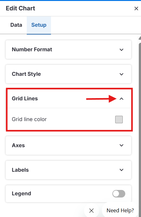 Torne seus dados mais fáceis de ler ativando ou desativando as linhas de grade e ajustando sua cor.