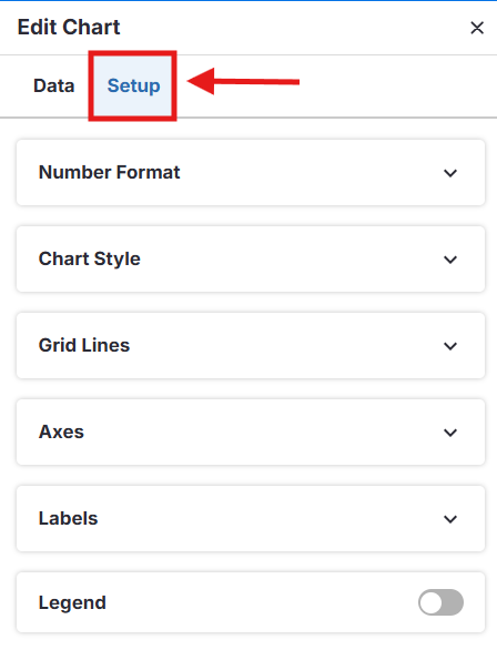 Clique na aba Configuração no painel de edição do gráfico.