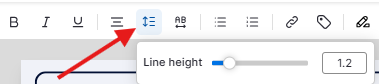 Para ajustar o espaçamento entre linhas, clique duas vezes no texto → abra o menu Altura da Linha na barra de ferramentas.