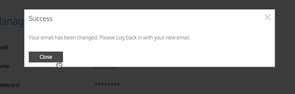 3. Uma confirmação no canto inferior esquerdo da página aparecerá e indicará Email atualizado