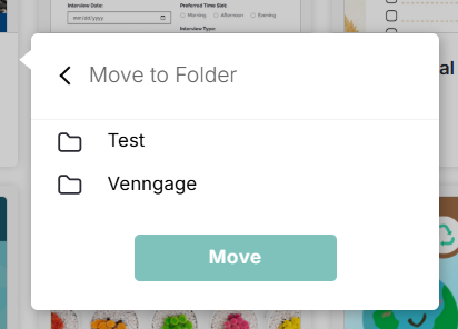 4. Escolha a pasta para a qual deseja mover o design. Depois de selecionado, o design será movido automaticamente e uma mensagem de confirmação aparecerá no topo da página.