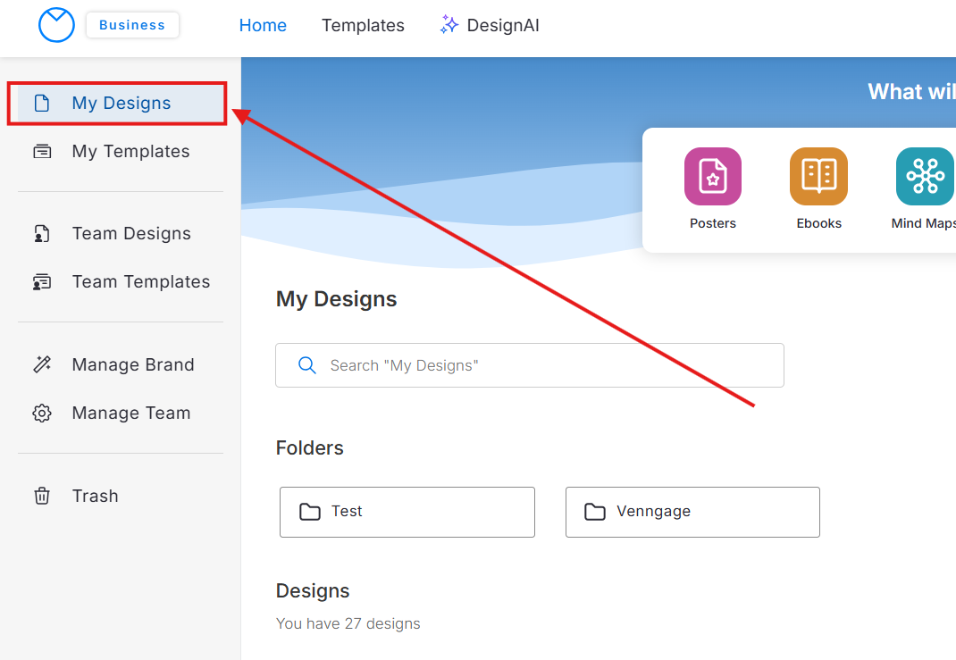 Vá até a página My Designs ou Team Designs.