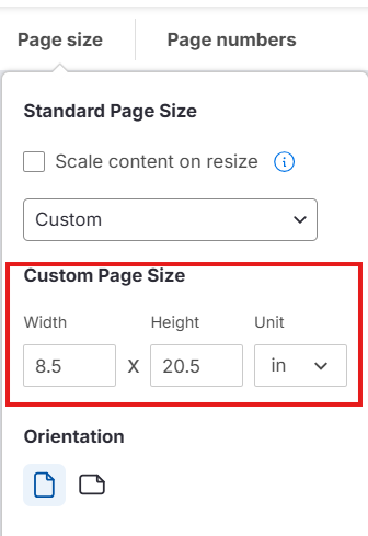 Usar um tamanho de página personalizado