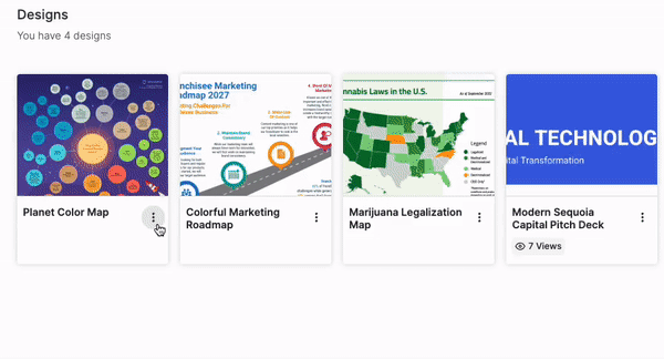 Clique no menu kebab (três pontos verticais) ao lado do título do design para abrir o menu.