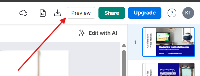 Clique em Visualizar no canto superior direito do Editor.