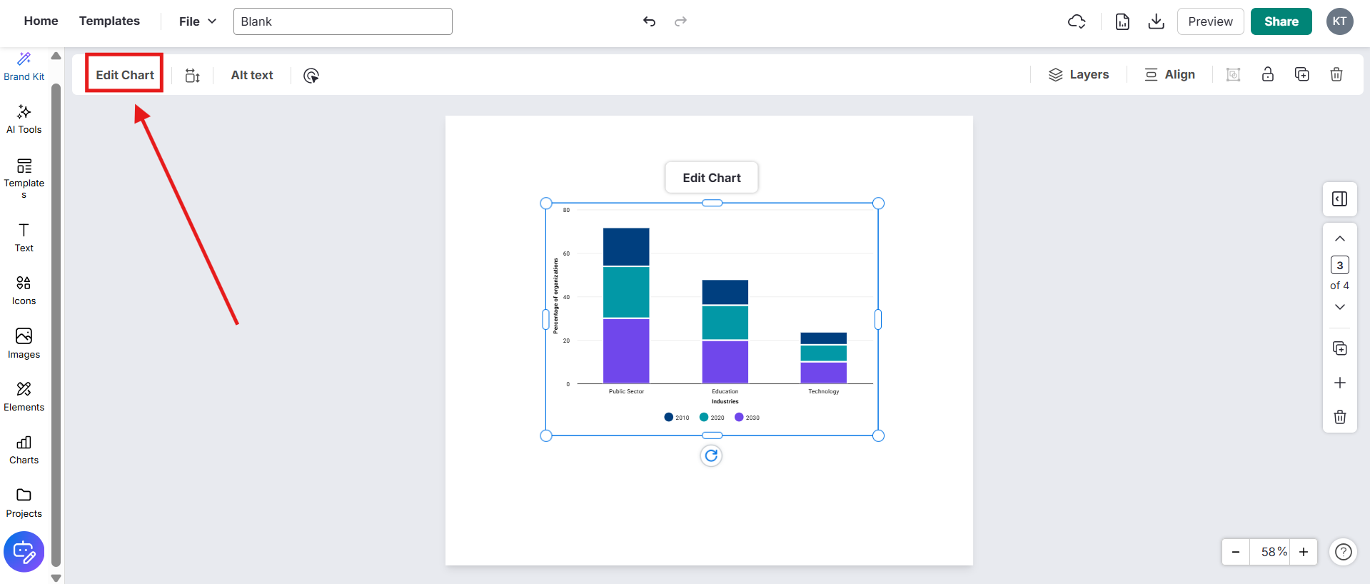 Dê duplo clique no gráfico ou selecione-o e clique em Editar Gráfico na barra superior.