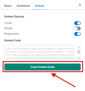 Clique em Copiar código de incorporação na parte inferior da janela modal.