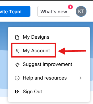 Clique no ícone de Conta (o círculo com suas iniciais) no canto superior direito da janela do Venngage.