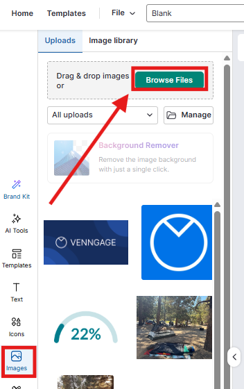 • Clique no botão Imagens na barra de ferramentas à esquerda.