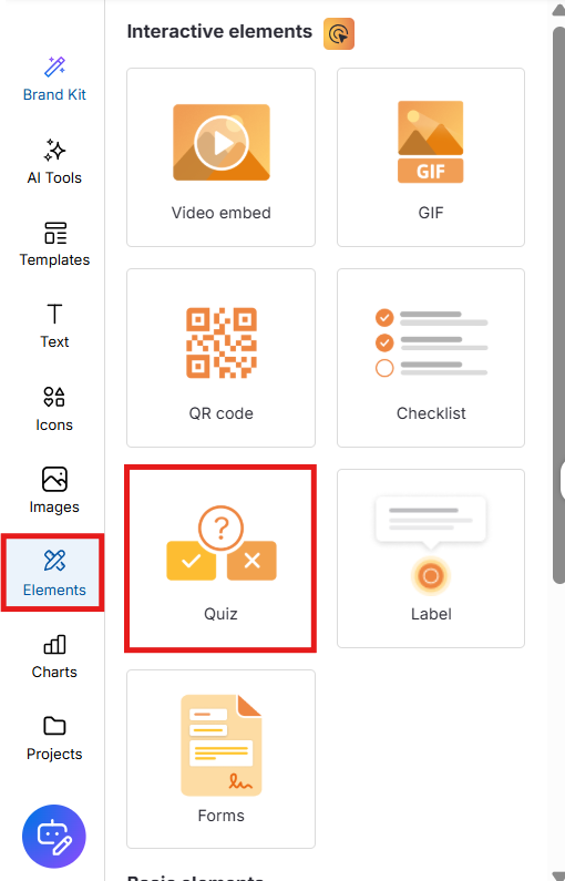 💡 Dica: Adicione questionários a planos de aula, materiais de onboarding ou guias de treinamento para aumentar o engajamento e reforçar o aprendizado — tudo sem sair do Editor da Venngage!