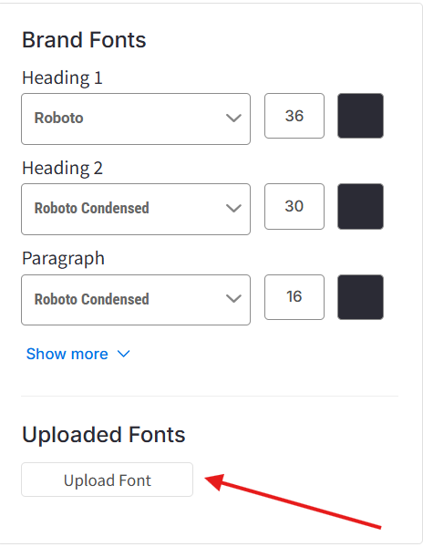 Em Fontes da Marca, clique em Fazer Upload de Fonte e selecione seu arquivo.