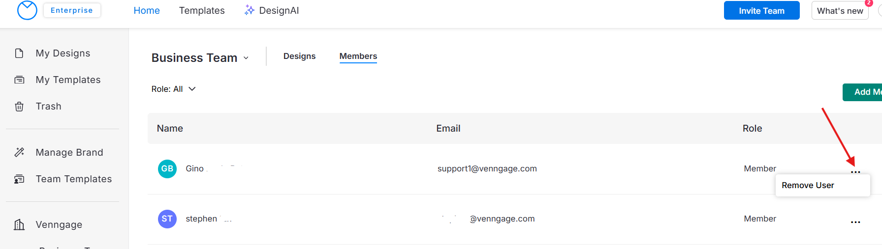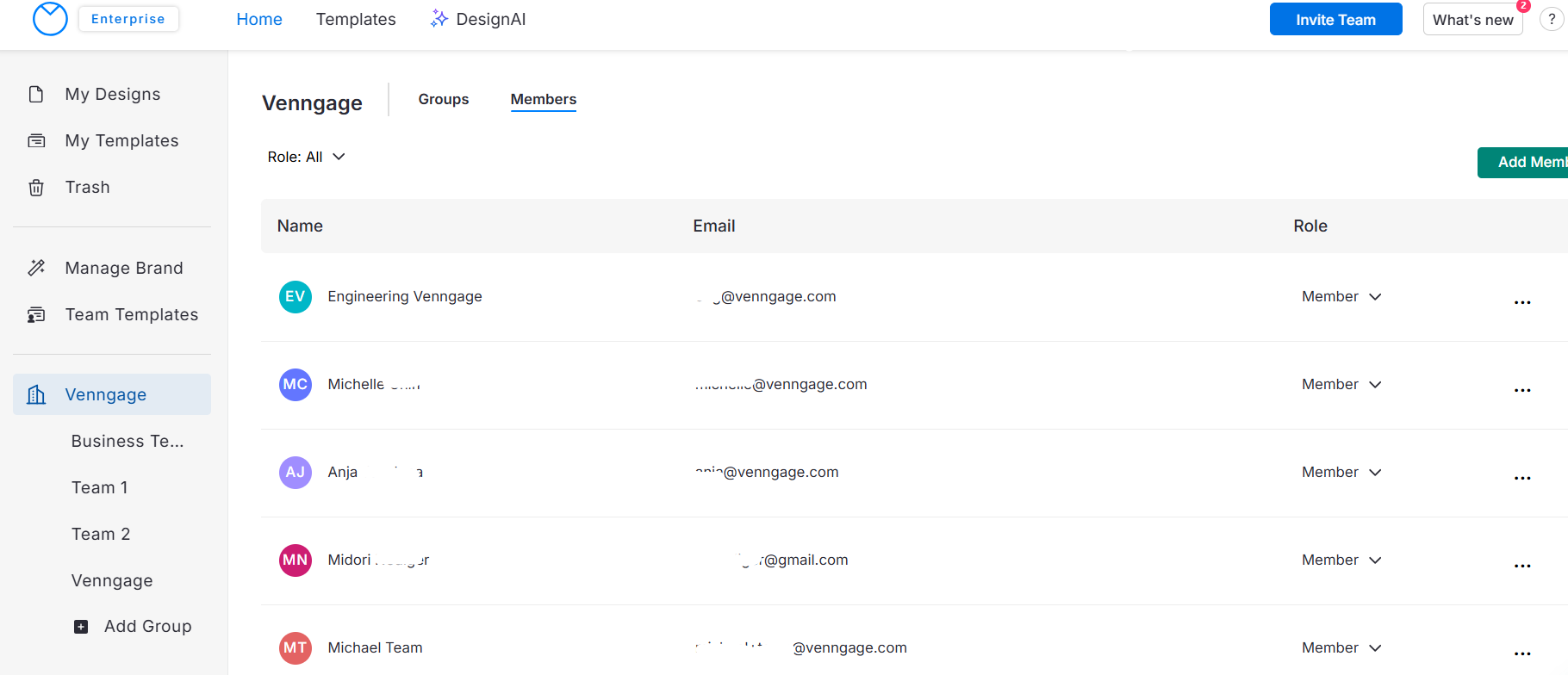 Se você foi designado para o papel de Administrador no Venngage, você tem mais controle do que um Membro padrão. Como Administrador, você pode: