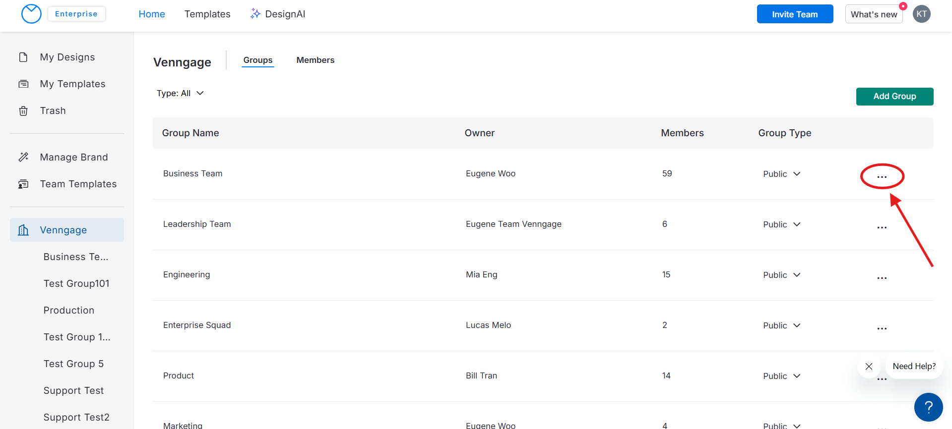 Clique no menu de três pontos (⋯) no final da linha do Grupo.