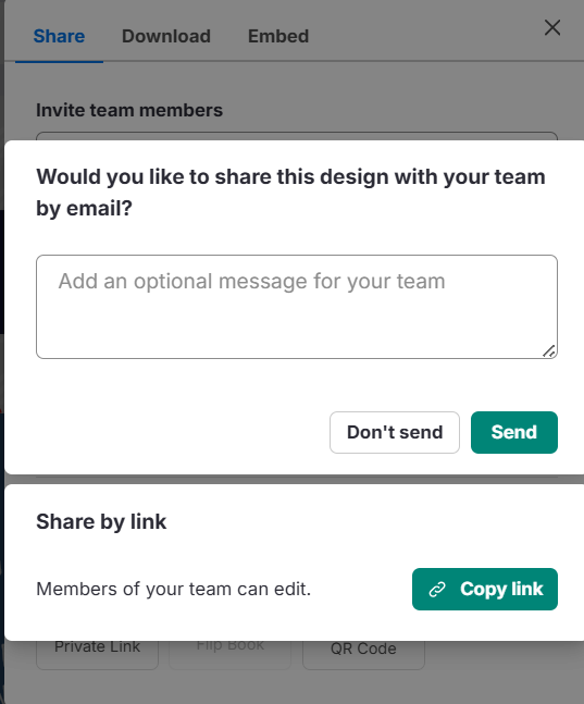 “Would you like to share this design to your team by email?”