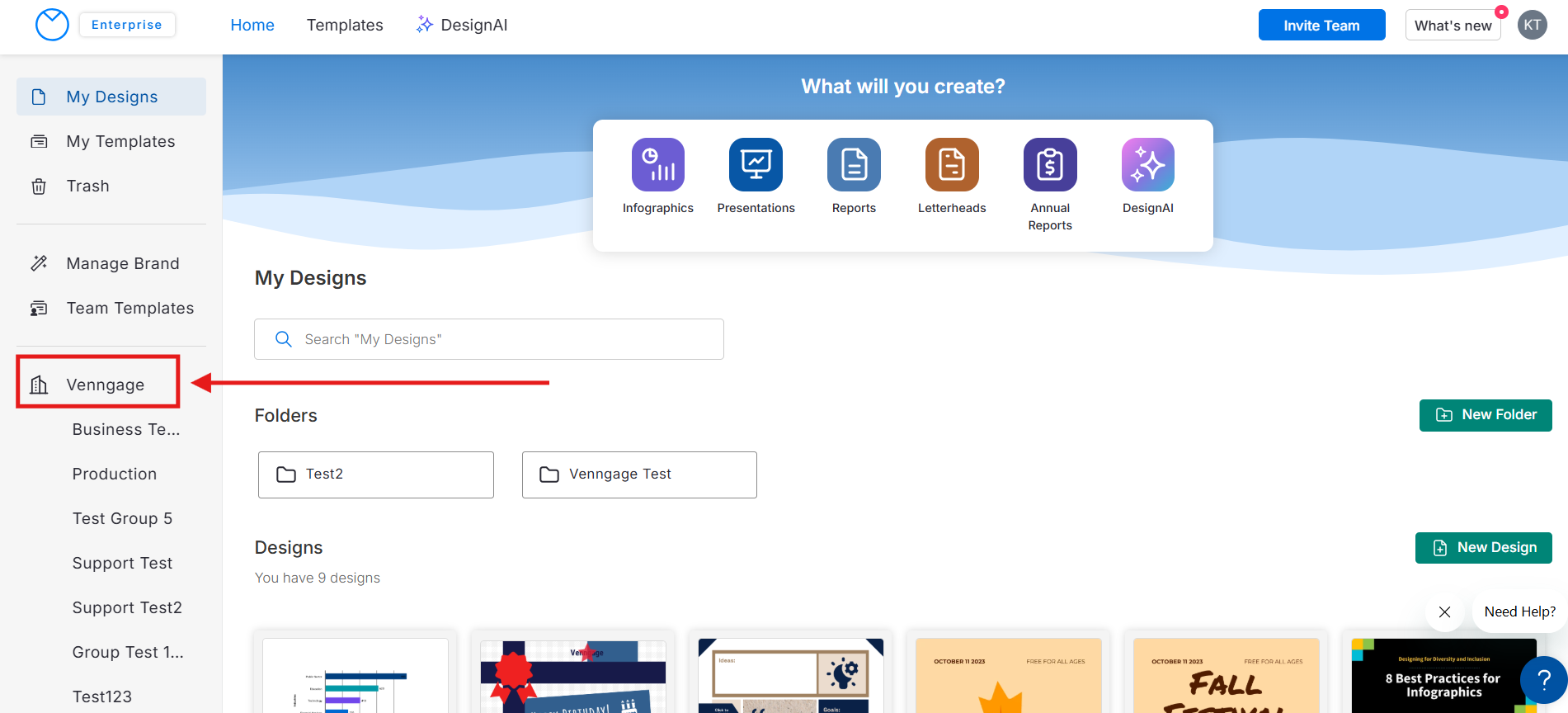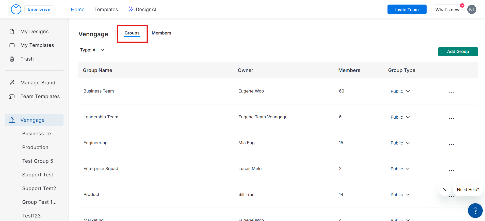 👉 Para Convidados externos à sua organização, insira manualmente o endereço de e-mail deles. Eles precisarão criar uma conta Venngage para visualizar os designs compartilhados com eles em um Grupo.