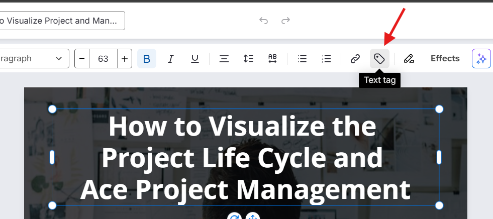 Escolha a etiqueta de texto apropriada no menu (por exemplo: Título, Cabeçalho 1, Cabeçalho 2, Parágrafo).