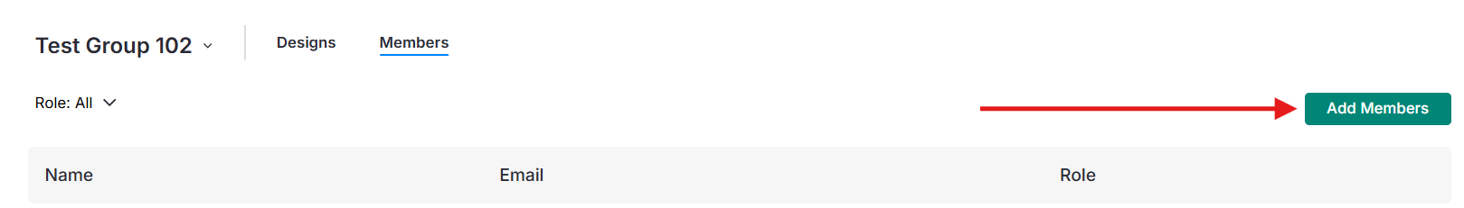 Na página do Grupo, clique na aba Membros, ao lado da aba Designs.