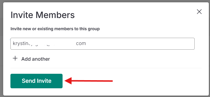 Um pop-up mostrará os e-mails convidados, e os Membros receberão uma notificação por e-mail.