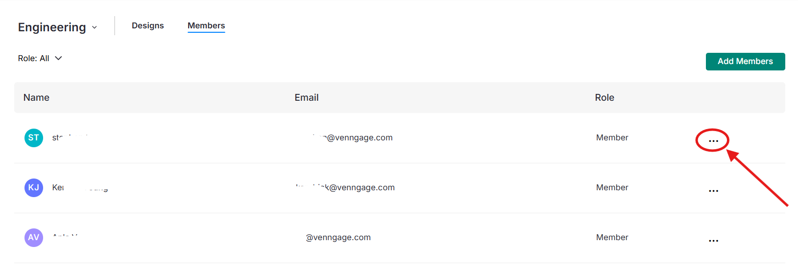 Localize o nome do Membro e clique no menu de três pontos ao lado do papel deles.