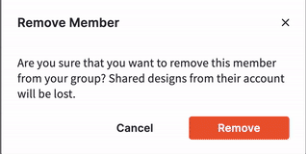 Esta ação também remove quaisquer designs que o Membro tenha compartilhado no Grupo.