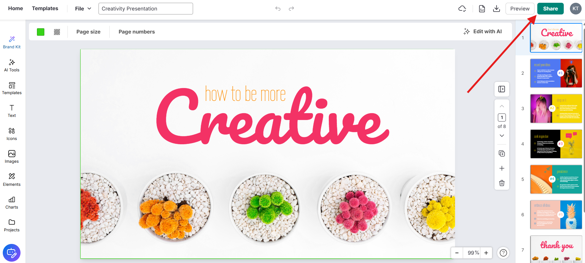 ✨ Compartilhar designs ajuda toda a sua equipe a se manter alinhada e a colaborar de forma mais eficiente nos materiais visuais da marca.