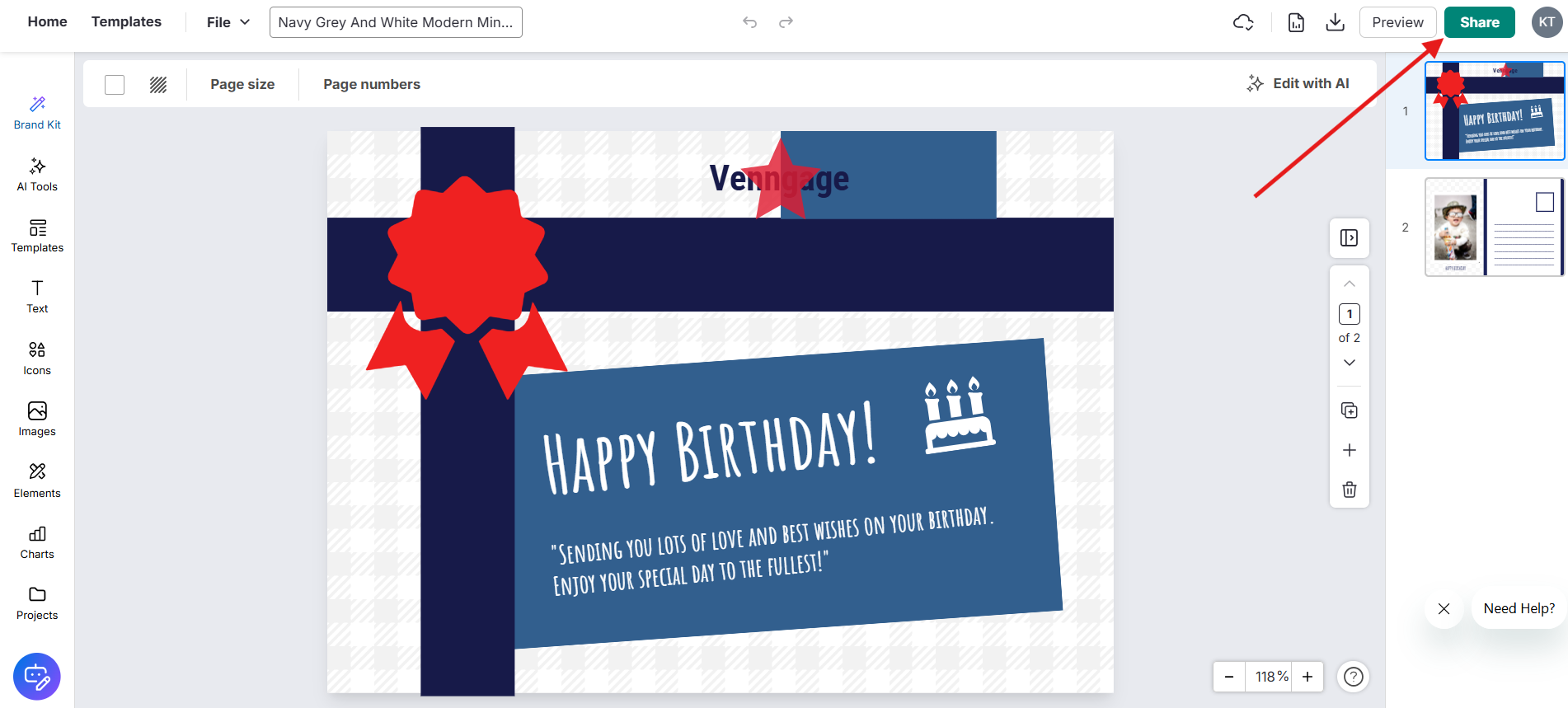 Quer colaborar ou compartilhar seu trabalho com sua equipe? Você pode compartilhar seu design da Venngage tanto a partir do Editor quanto diretamente da página Meus Designs.
