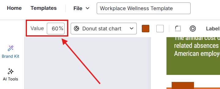 ✅ Pronto! Você adicionou e personalizou com sucesso um stat chart no seu design.