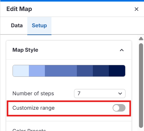 Em Estilo do mapa, abra o menu suspenso Número de etapas.