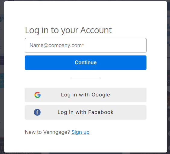 Faça login na sua conta do Venngage.