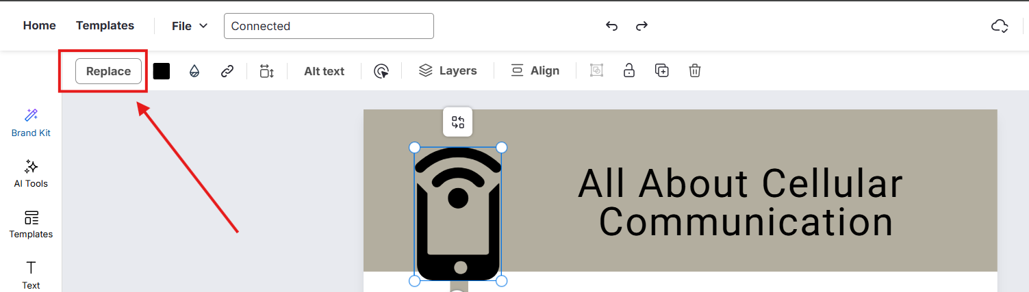 Dê duplo clique no ícone ou na imagem para abrir o menu Substituir (ou clique no botão Substituir na barra de ferramentas superior).