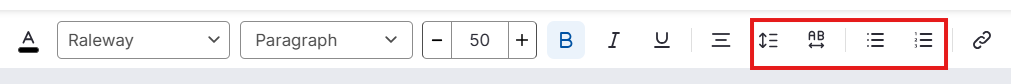 Ajuste espaçamento/altura da linha, espaçamento entre letras ou adicione listas com marcadores ou numeradas